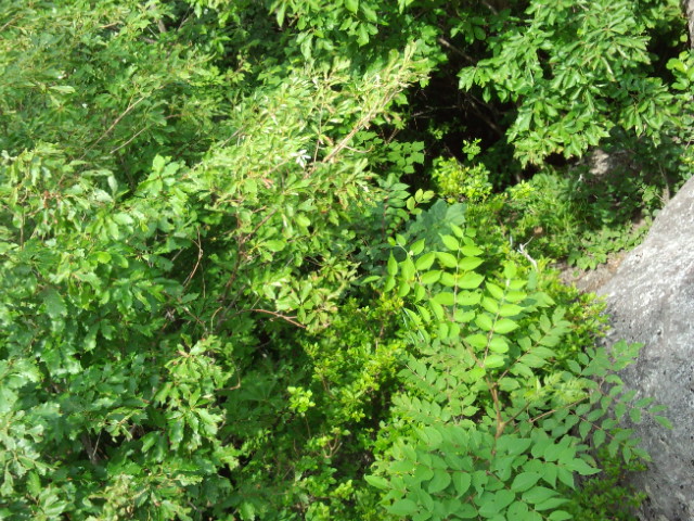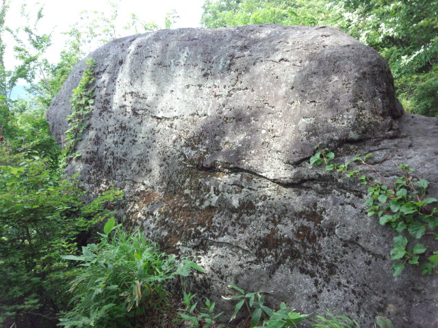 獣でももう少しマシな道を歩くだろうと思われる獣道以下の登山道をよじ登ること10数分、頂上にはやっぱり巨石が・・・。